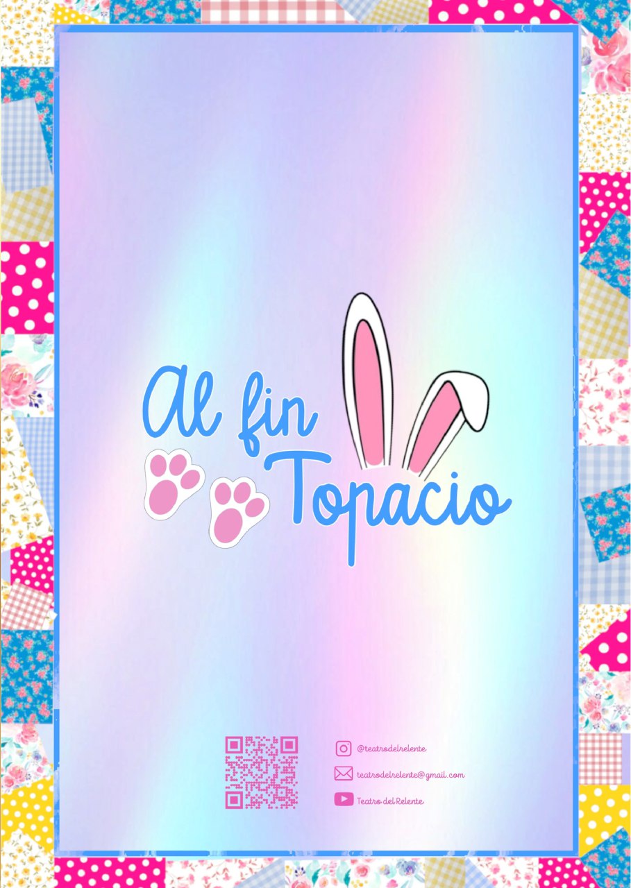 Un Conejo de la Suerte, un sastre un tanto desastre, un duende misterioso y unas locas adivinadoras, son parte de la aventura que le espera a Brillante al cruzar el majestuoso espejo y encontrase en un mundo dónde todo puede hacerse realidad. Al fin Topacio es una pieza teatral para la familia que aborda la expresión identitaria en la infancia."